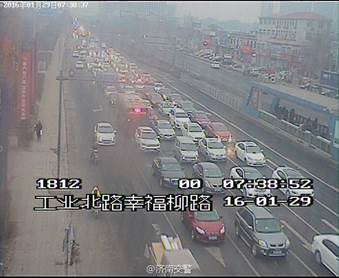 這是濟(jì)南早上七點(diǎn)半的工業(yè)北路(濟(jì)南城郊的一條不太繁華的街道)